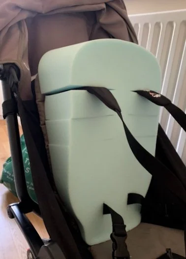 The Wedge can be removed with one hand. The Wedge is then placed on top of the folded pram. Alternatively, the pram can also be folded with the Wedge still in position. Video: Ergonomic pram cushion – The Wedge — Eyas